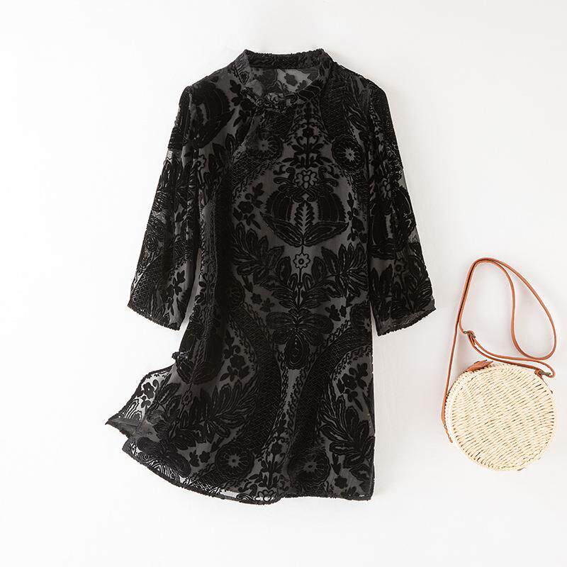 小飞袖 高级感连衣裙女通勤气质拼接手工钩织花 青山映 贰羊设计