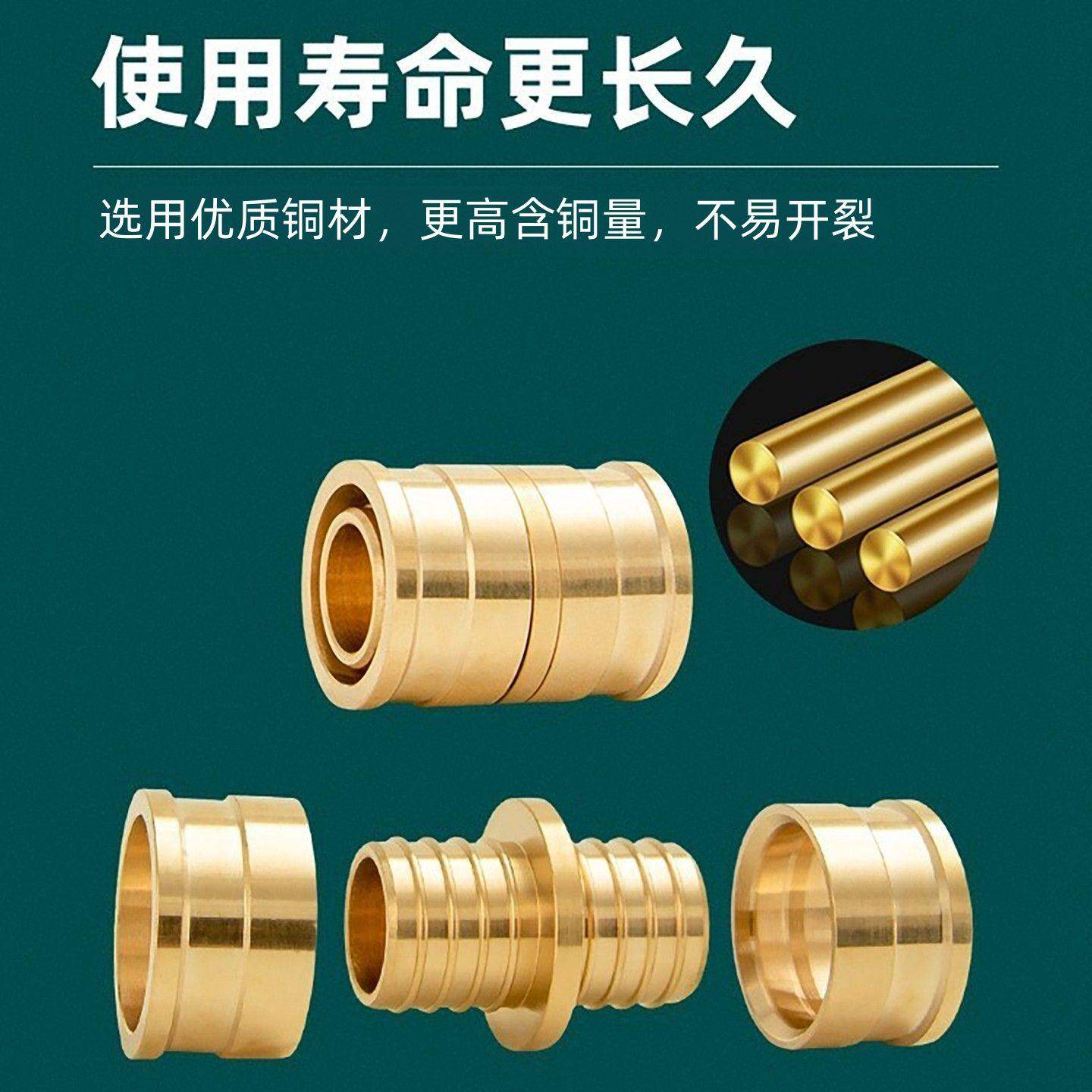 地暖管专用接头铜配件1216铝塑管1620滑紧件地热水管全铜等径直接由
