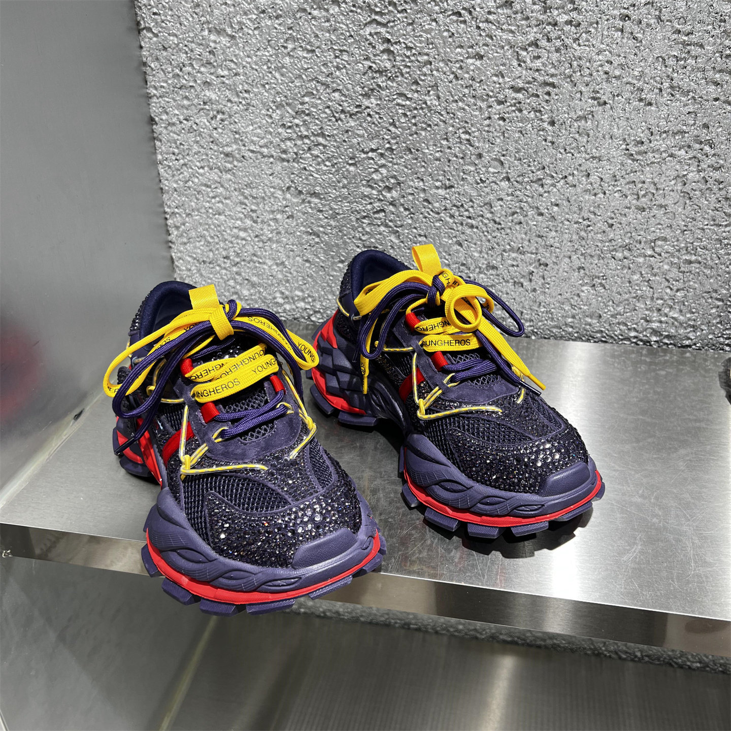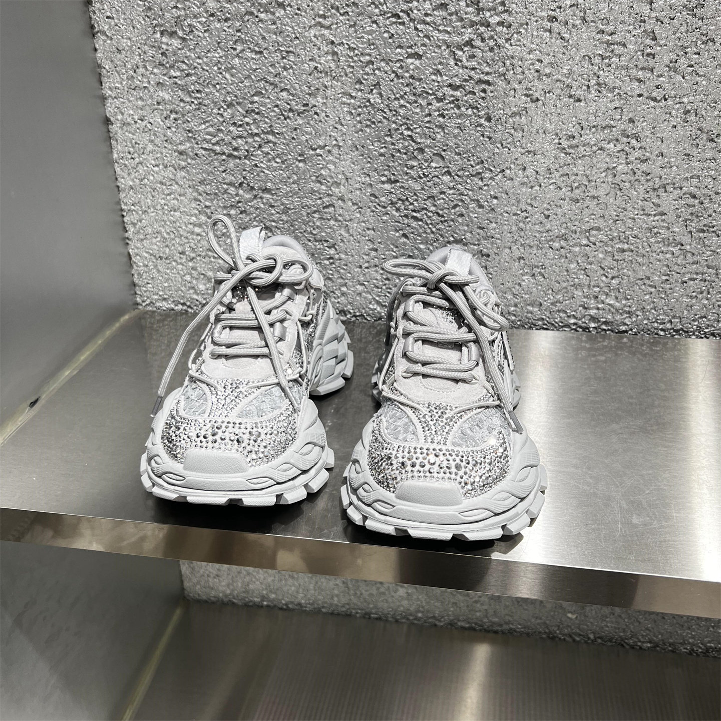 时尚 欧洲站女鞋 2026春新款 真皮拼网水钻厚底增高老爹鞋 运动休闲鞋
