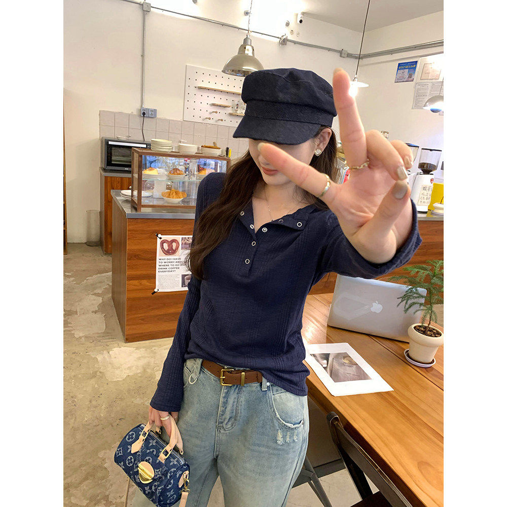 为您提供商品打底衫 内搭温柔风上衣ins T恤女2026春季 极简通勤简约暗扣坑条长袖的详细介绍,
