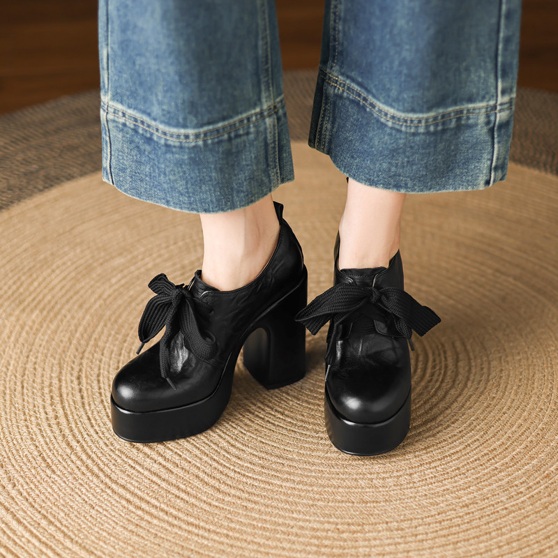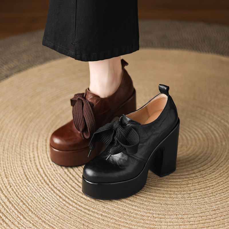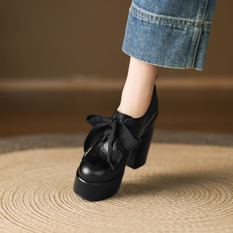 女厚底粗跟防水台时尚 13cm头层牛皮超高跟鞋 时尚 系带深口单鞋 女鞋由