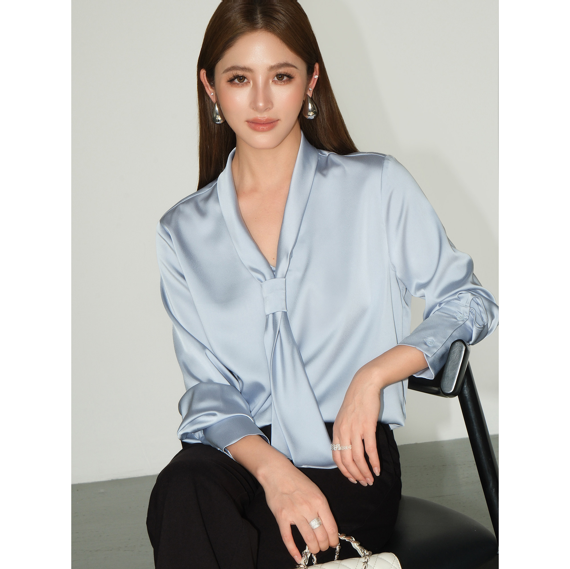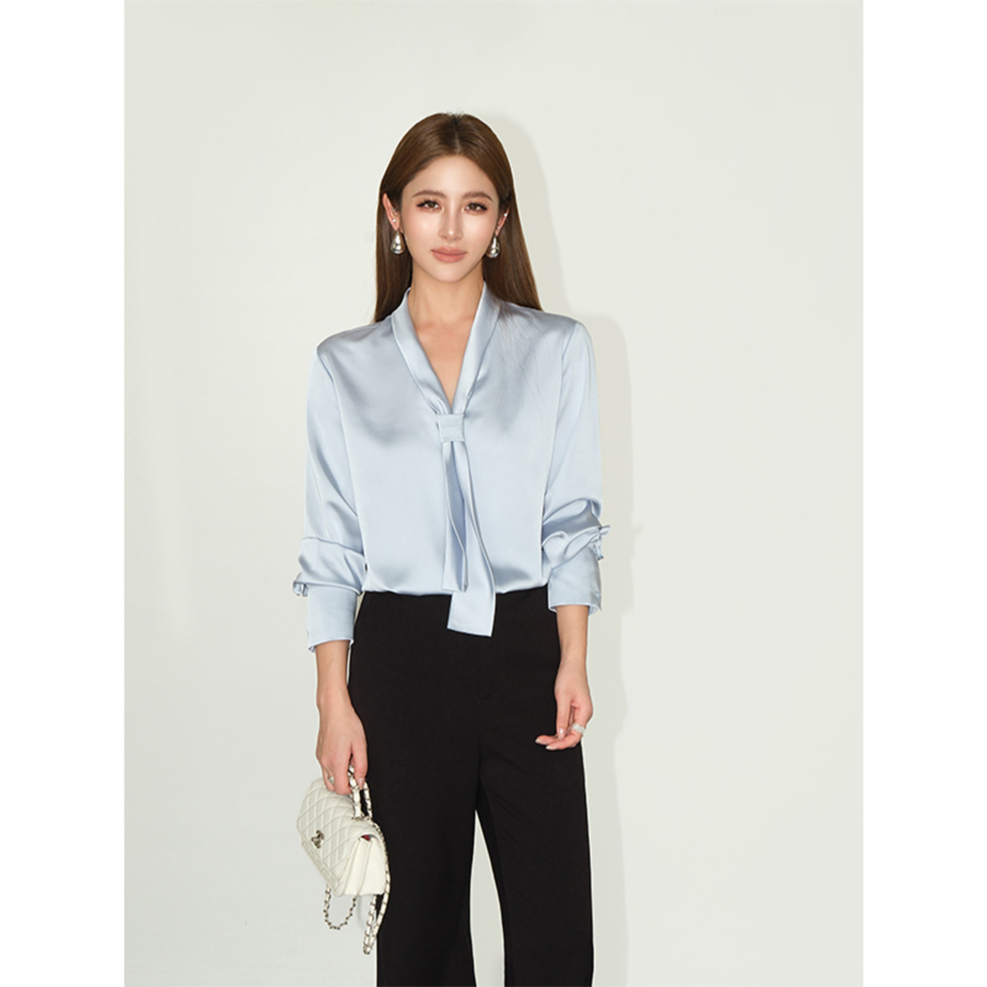 为您提供商品NEVA 鎏光春日 优雅缎面飘带翻领衬衣女高级气质垂感宽松衬衫的详细介绍,