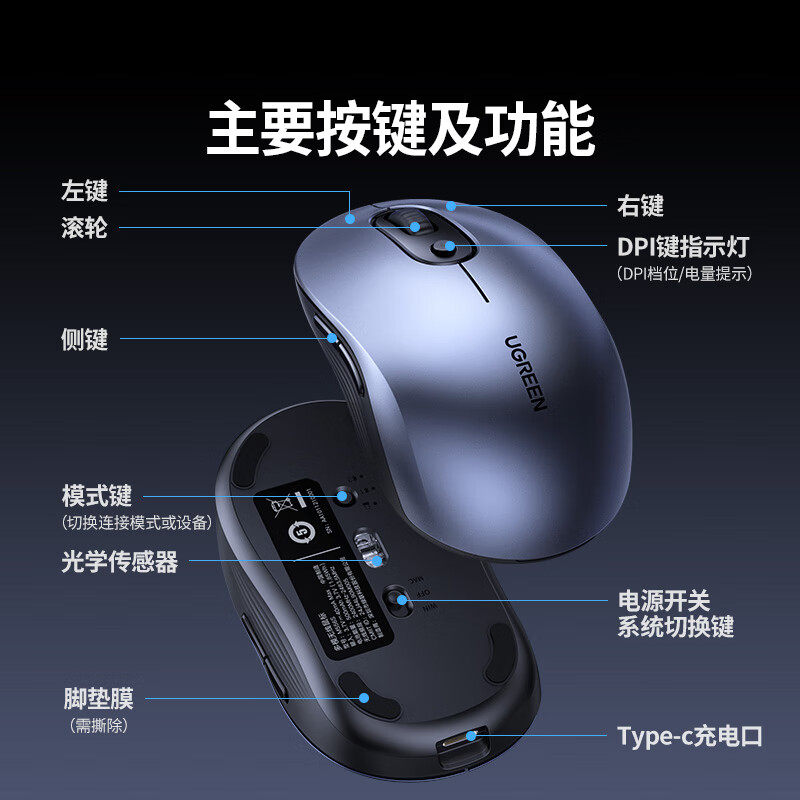 为您提供商品绿联无线蓝牙鼠标静音办公大小手电竞双模人体工学笔记本电脑滑鼠的详细介绍,