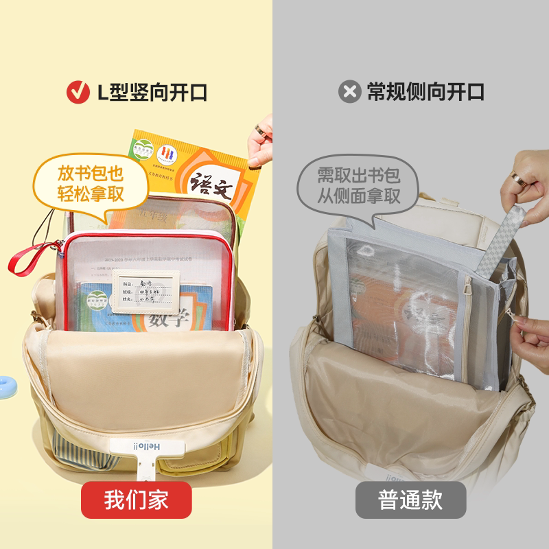 撞色L型3层科目分类袋补习手提书袋小学生拎书拉链学科作业试卷资料补课收纳包整理透明网纱文件袋 Missart由