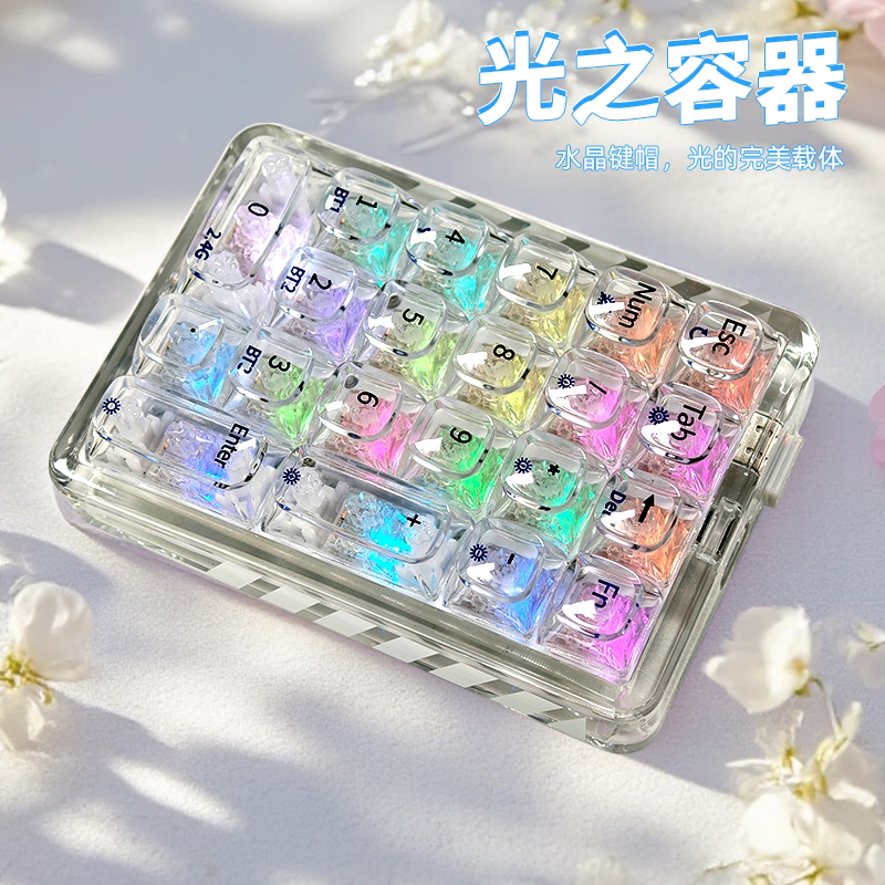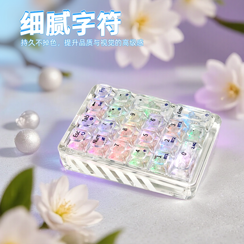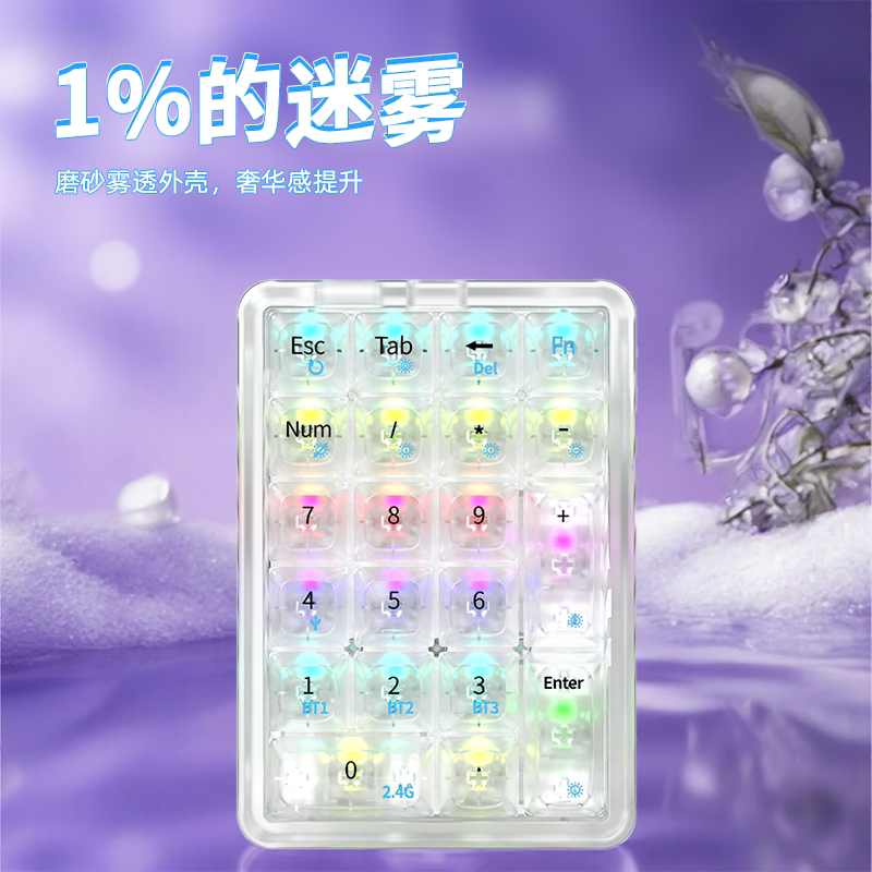 F21透明数字小键盘三模机械键盘有线外接蓝牙无线办公RGB灯光