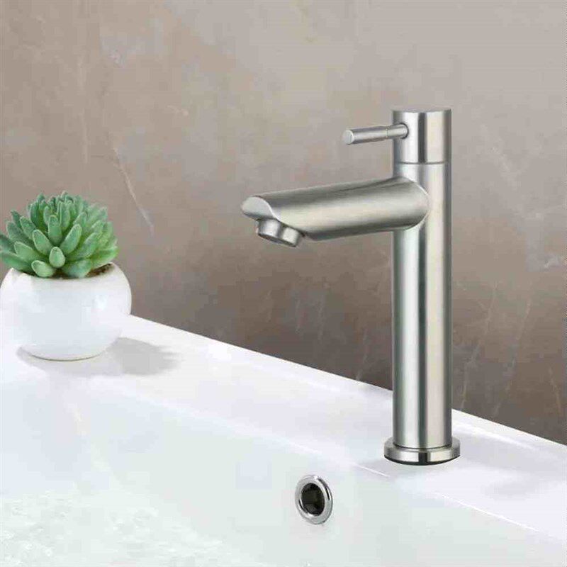 Counter Bathroom Steel Handle Faucet Single Basin Stainless