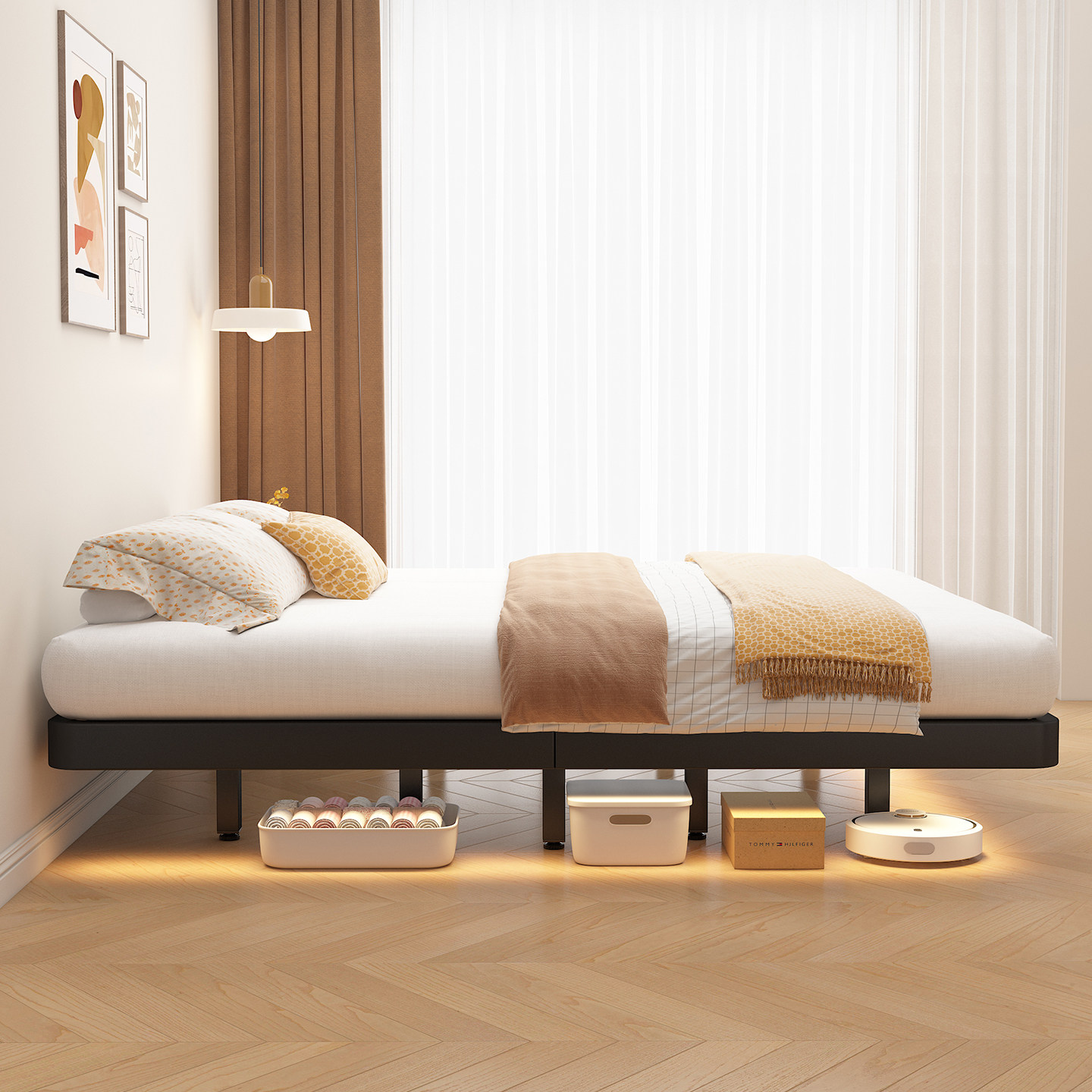 榻榻米铁艺床家用双人床小户型任意尺寸无床头靠背钢木床定制矮床