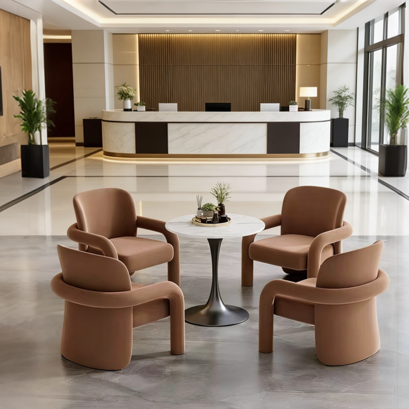 轻奢风接待椅橙色单椅固定扶手金属框架西餐厅酒店大堂美容院座椅由