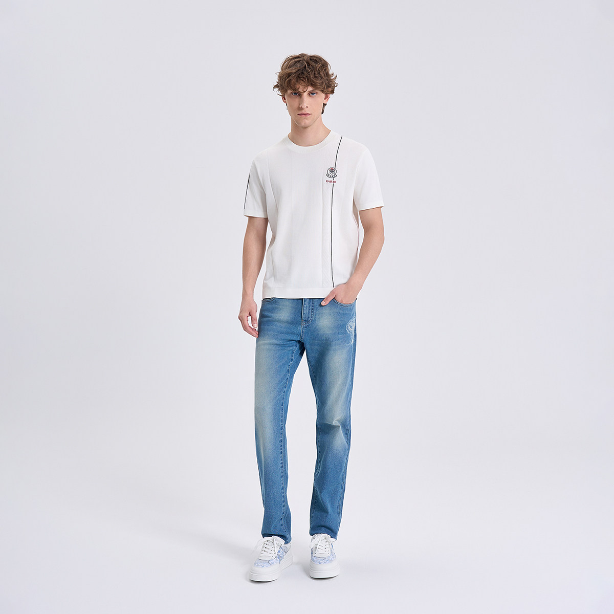 针织短袖 新款 2026夏季 肌理交织白色圆领短袖 毛衫 男士 RARE威雅男装