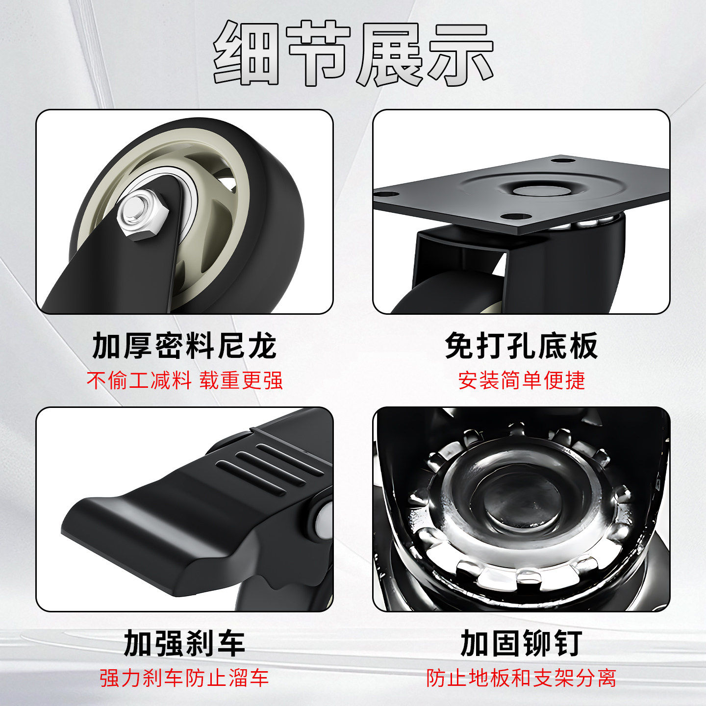 脚轮1.5寸2寸2.5寸3寸万向轮静音脚轮刹车轮子定向轮家具轮箱包轮