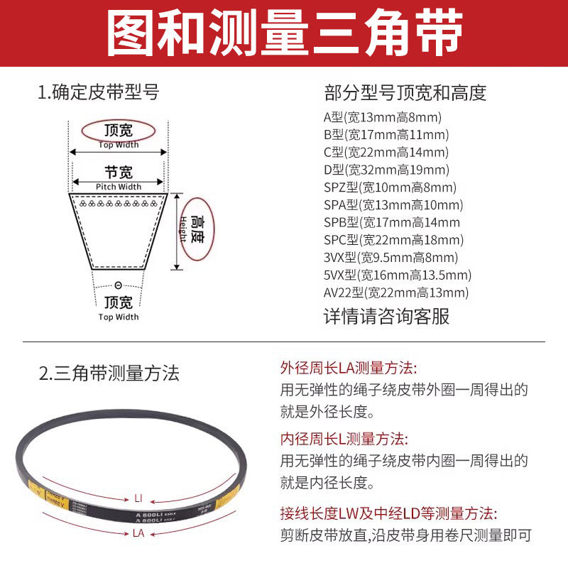 三力士三角带A型B型C型A800Li到A1850橡胶传动带工业机器硬线皮带