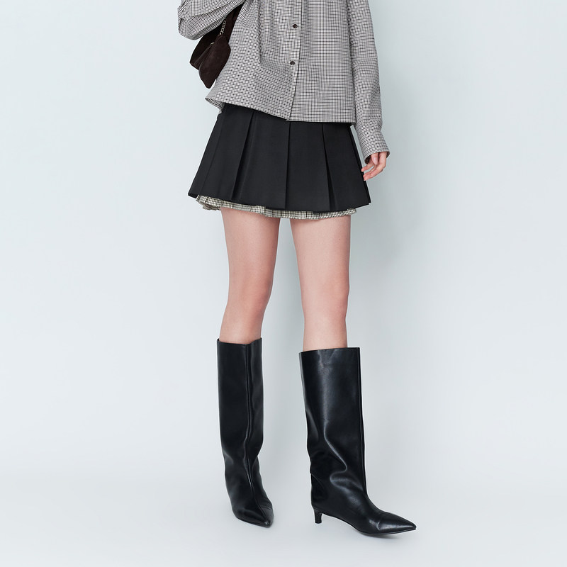 格纹撞色设计感高腰短款 百褶裙L2A6QZ033 新款 indicia标记2026春季