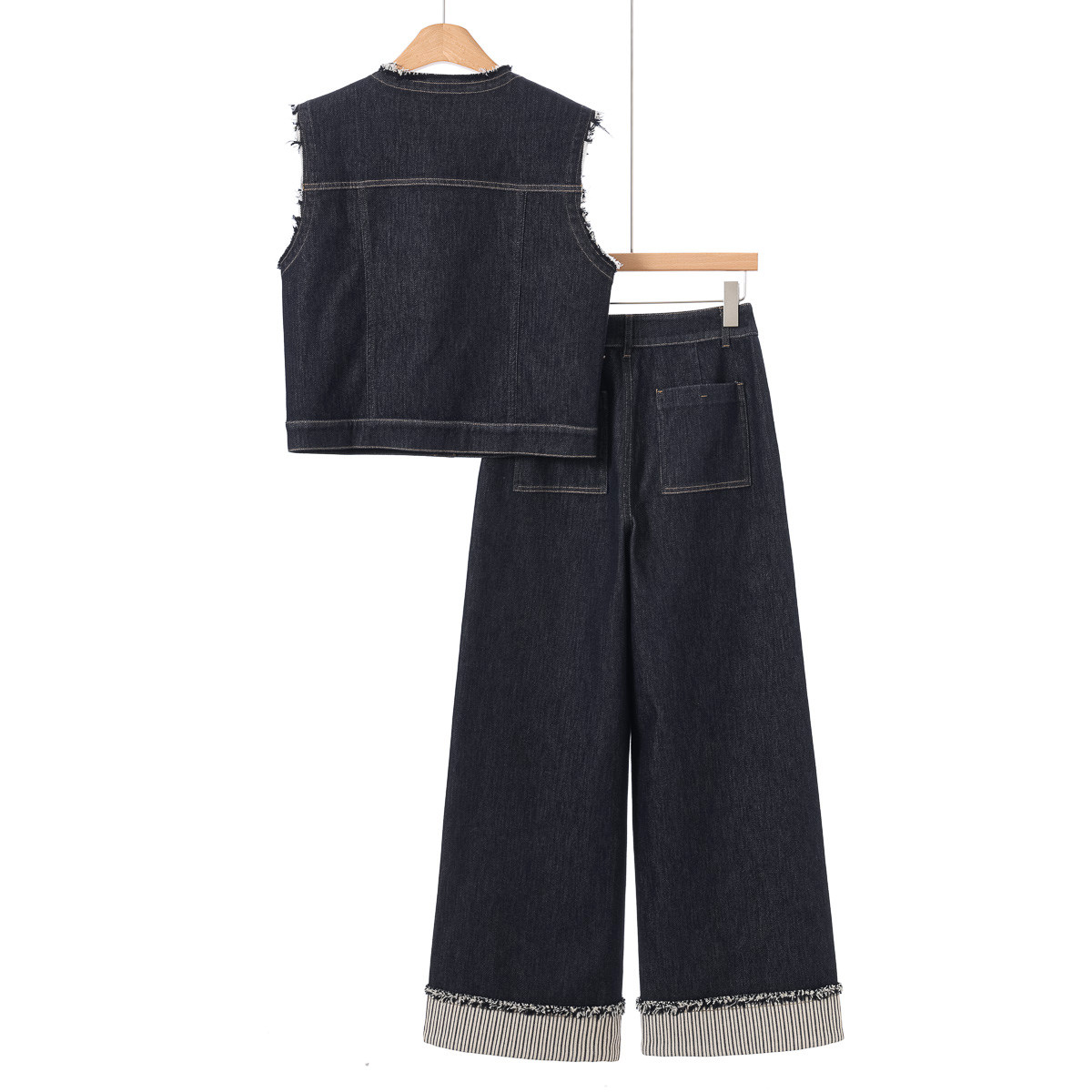 棉毛边牛仔套装 西湖阁老 037 高腰直筒裤 马甲外套 葛 26春装