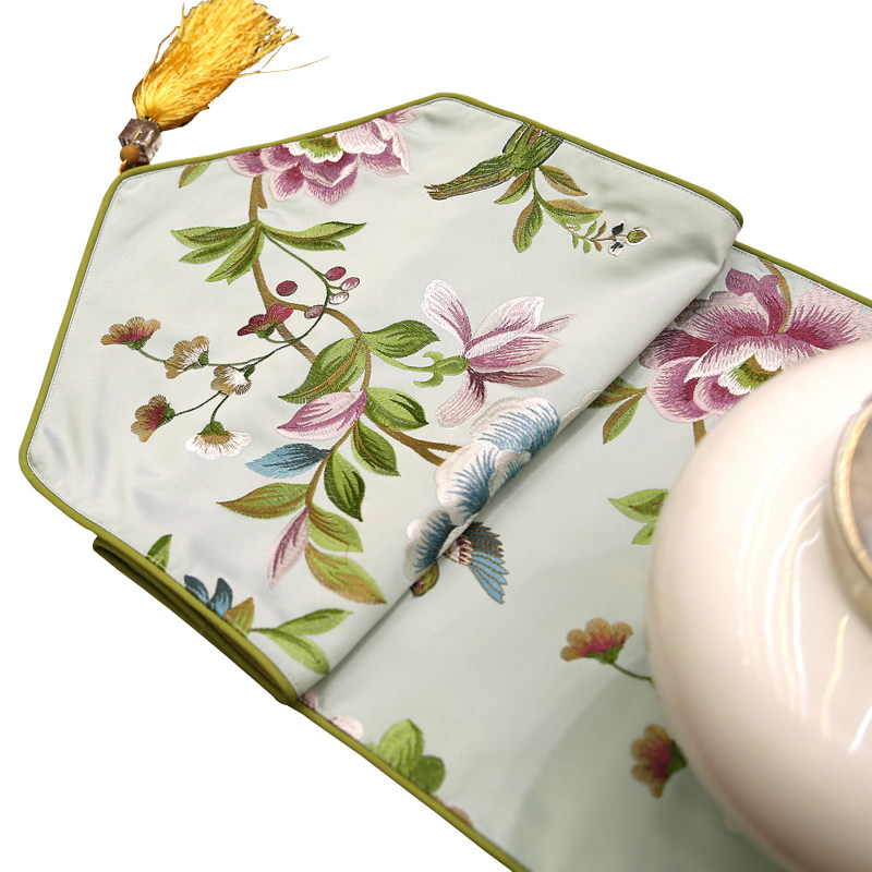 中式 床旗茶几布玄关电视柜饰布 刺绣桌旗现代茶几桌旗欧式由