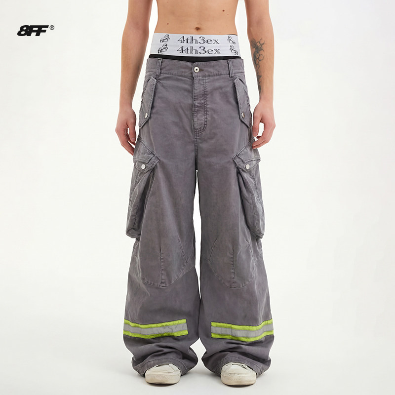 裤 8FF 杨博文同款 多口袋工装 子 潮水洗做旧脏染宽松cargo消防裤