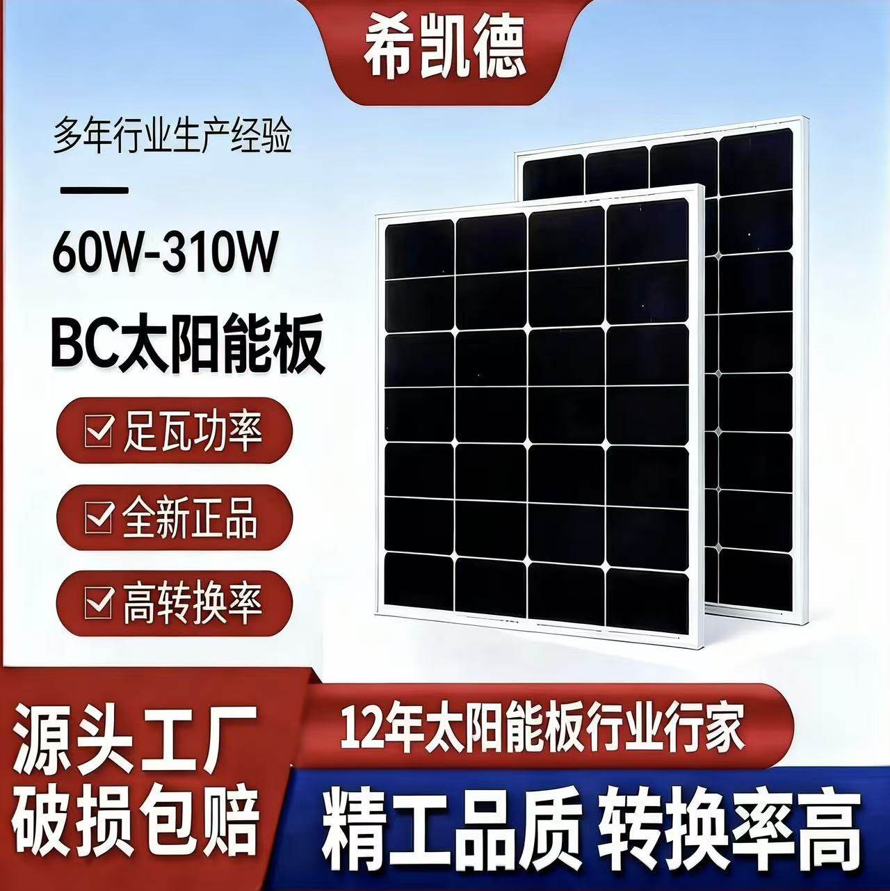 厂家直销BC太阳能光伏板单晶100W80W310W太阳能发电板电瓶充电板由