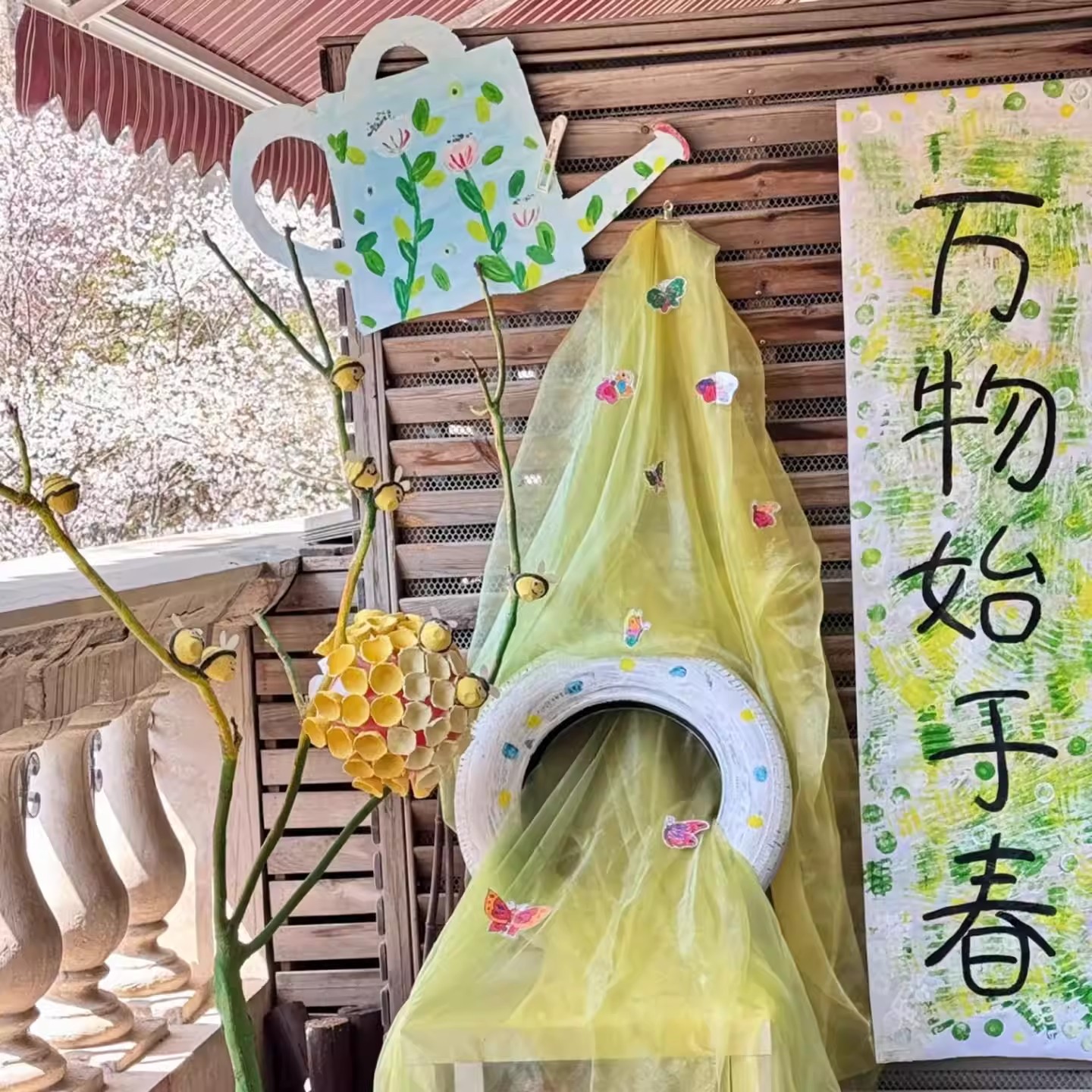 墙饰吊饰 幼儿园春天环创布置材料浇花水壶kt板道具植物区角春夏季由