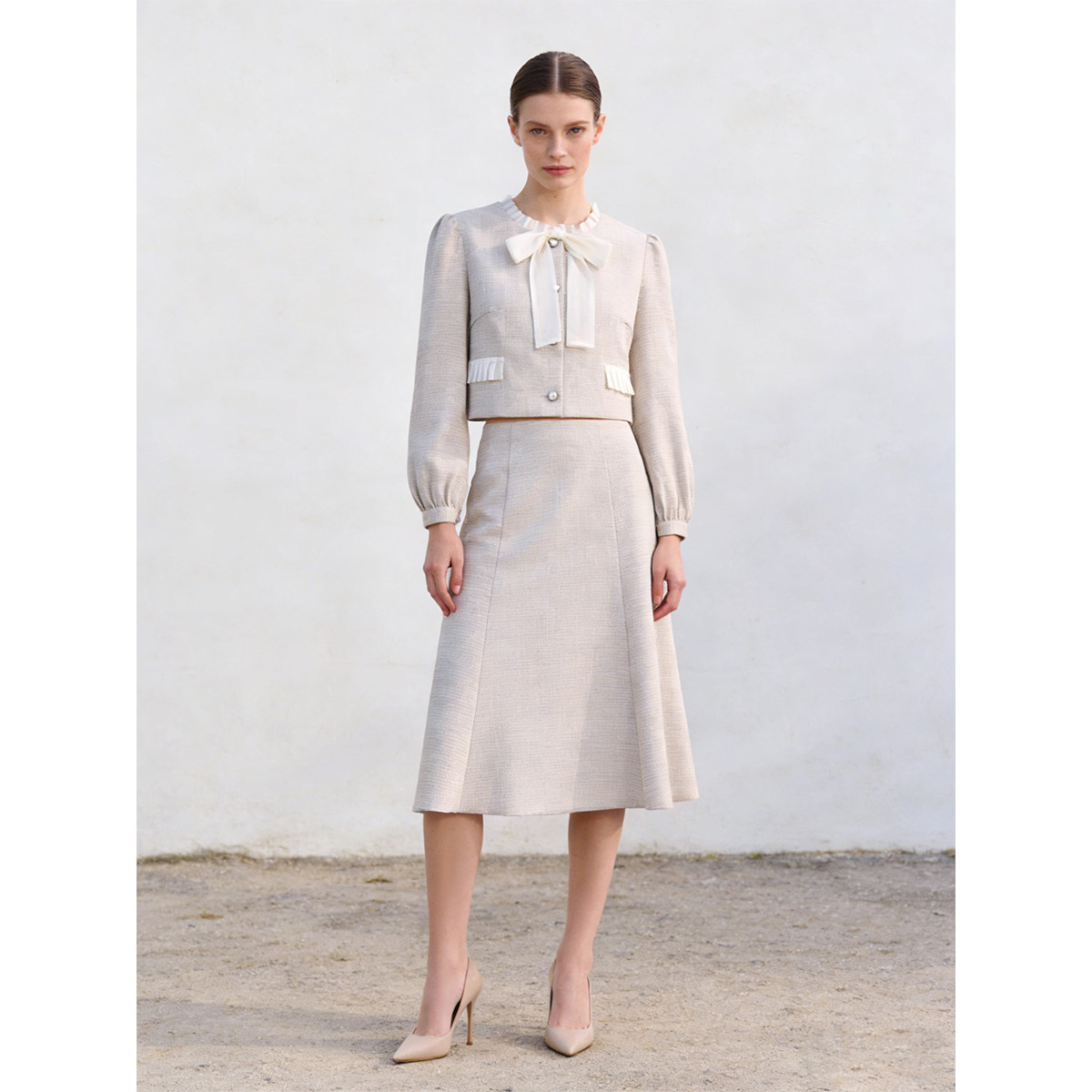 春装 奕 29%粘纤 816 上衣 高腰半身裙套装 木耳边短款 1399