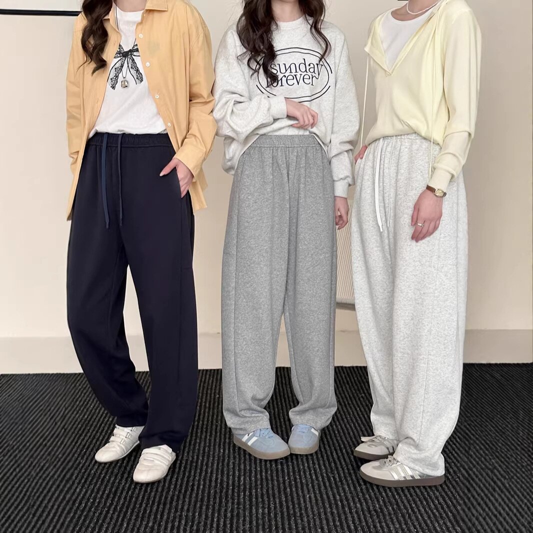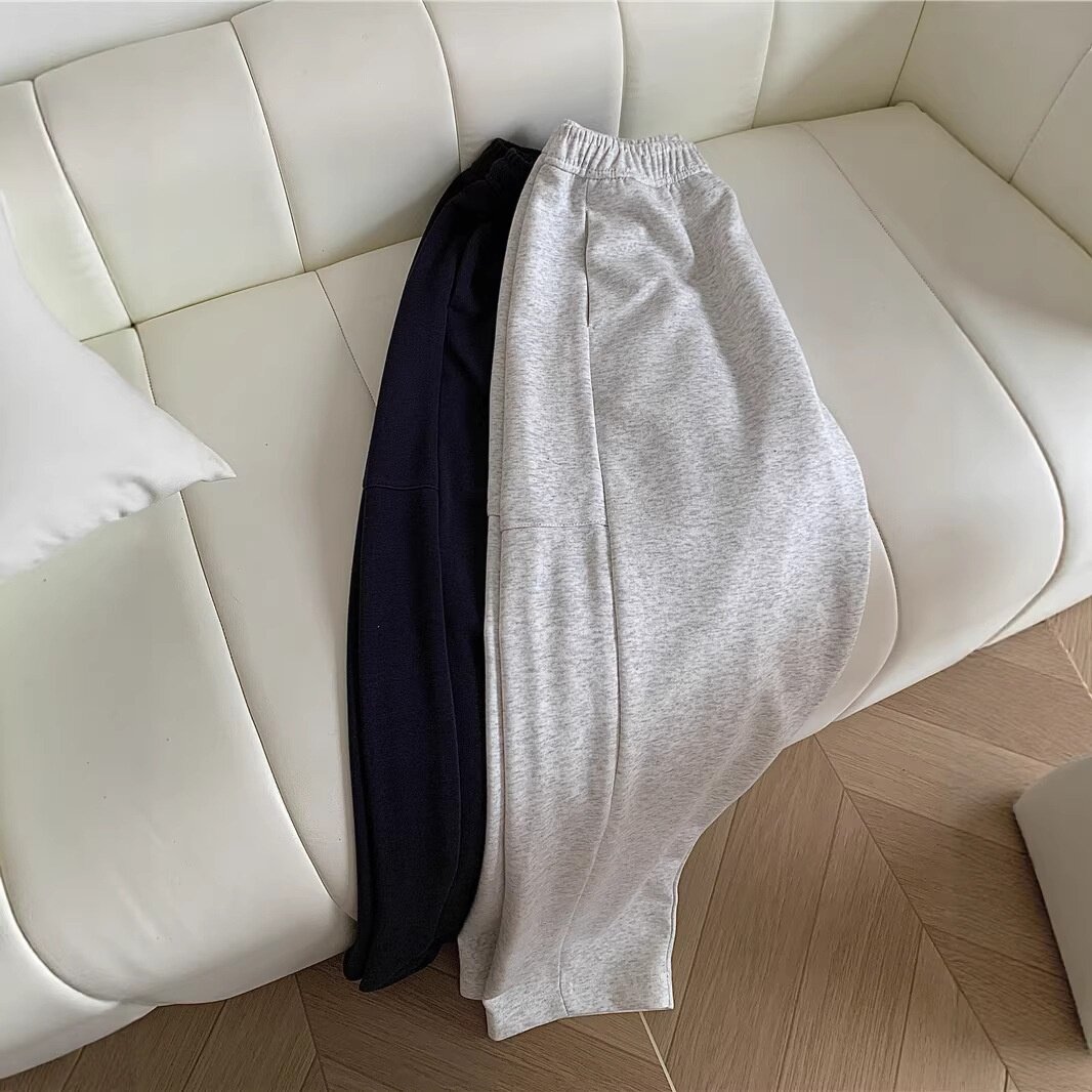 asomesome美式 女灰色修身 休闲松弛运动裤 子 黑色微喇直筒低腰卫裤