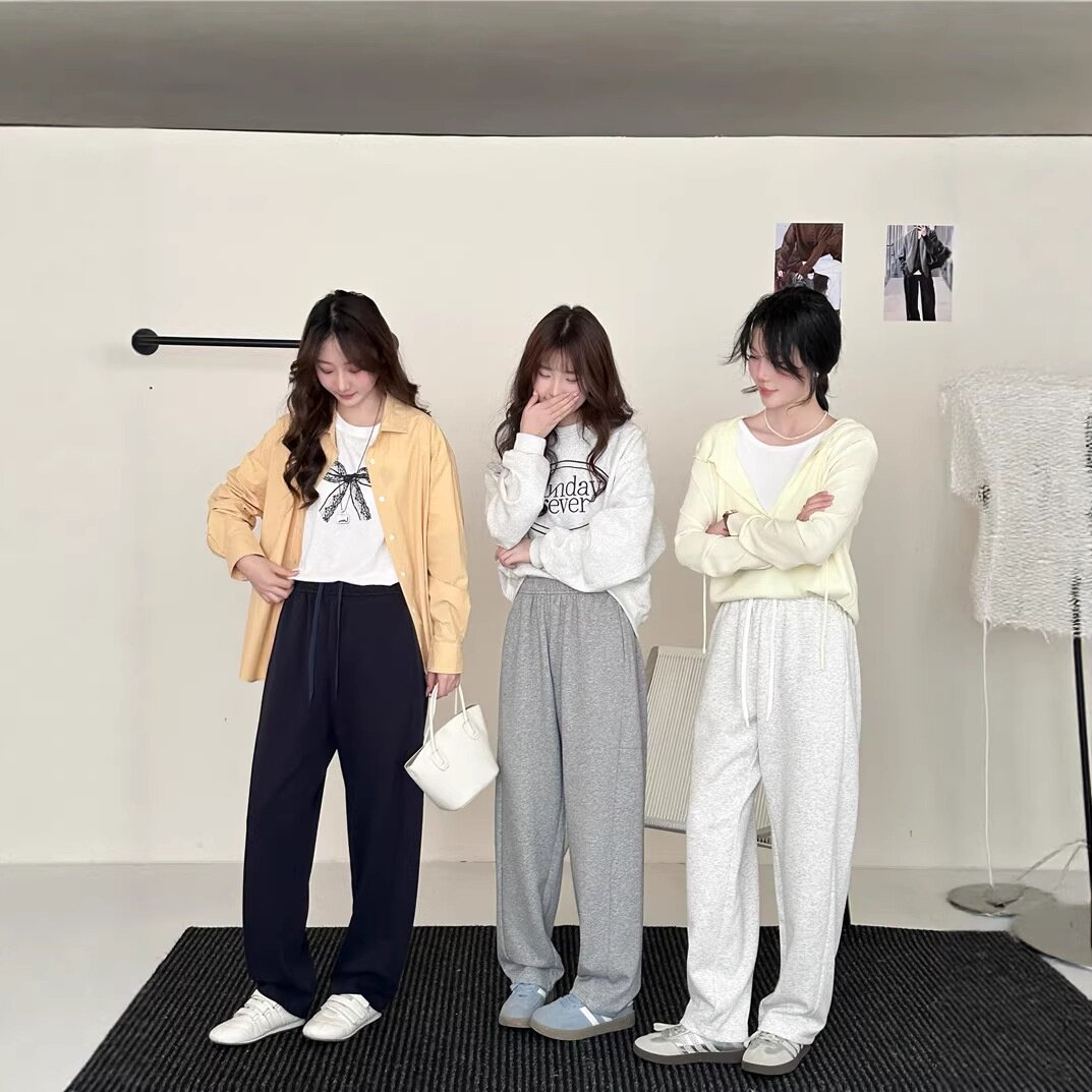 新款 杨幂同款 SIINSIIN休闲白色直筒裤 女春季 小个子2026黑色 运动裤