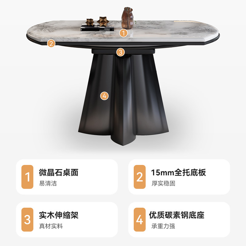 轻奢天然大理石伸缩餐桌小户型方圆两用家用微晶石餐桌椅组合 意式