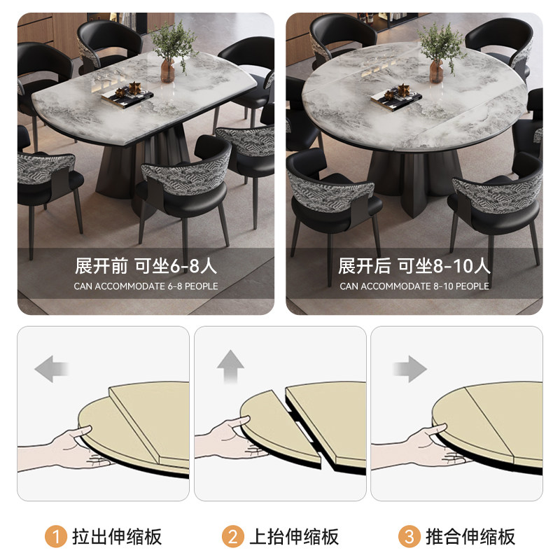 轻奢伸缩折叠方圆两用餐桌小户型可储物微晶石桌椅 天然大理石意式