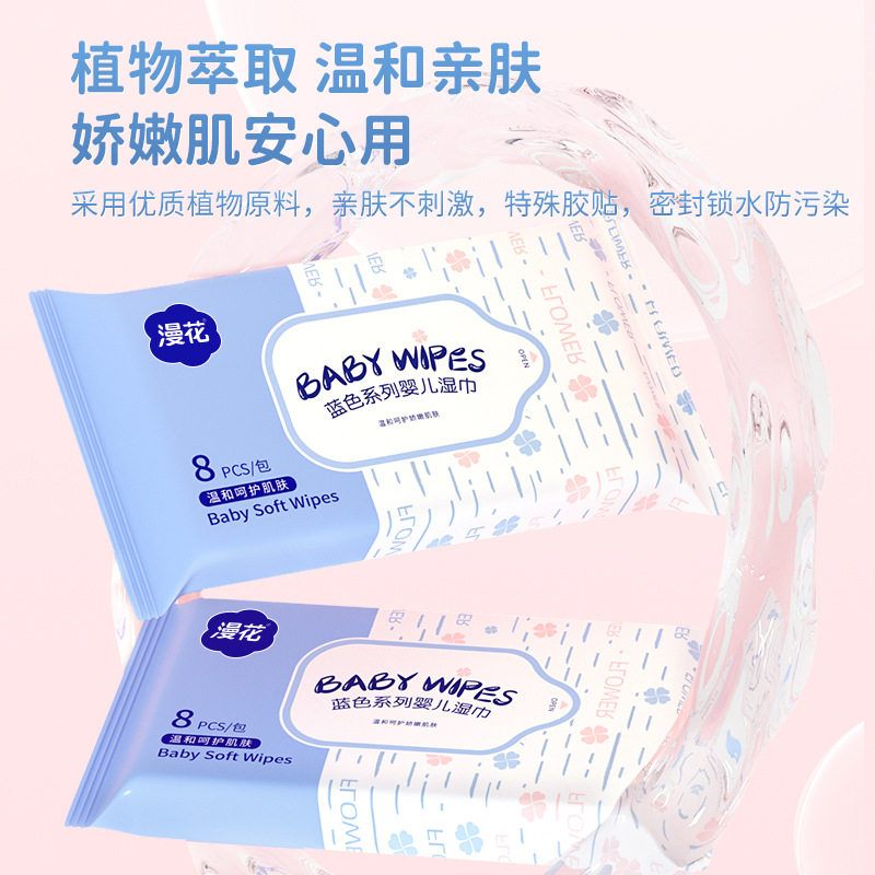 漫花婴儿湿巾小包1分钱拍2发4便携随身手口屁儿童宝宝家用湿纸巾由