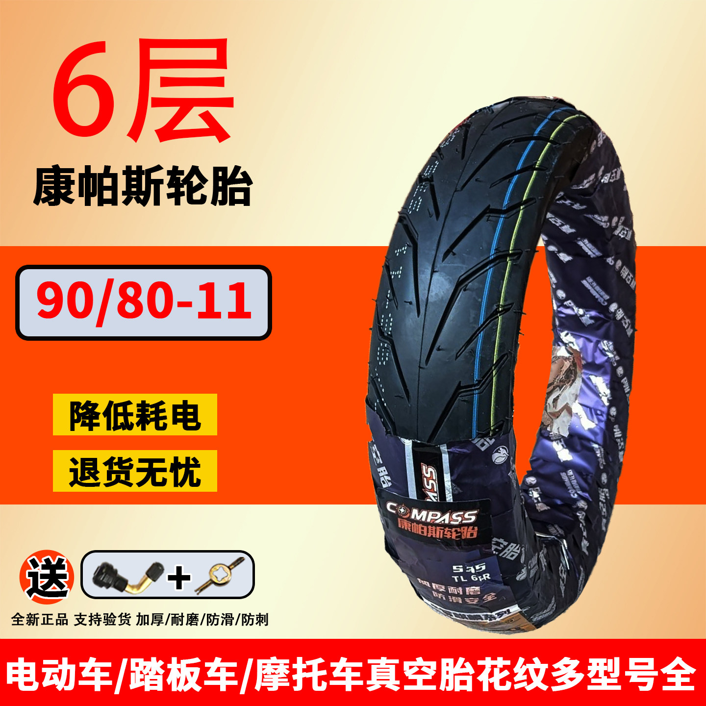 康帕斯电动车外胎90 11真空胎S35 6层 6PR耐磨抗扎正品由