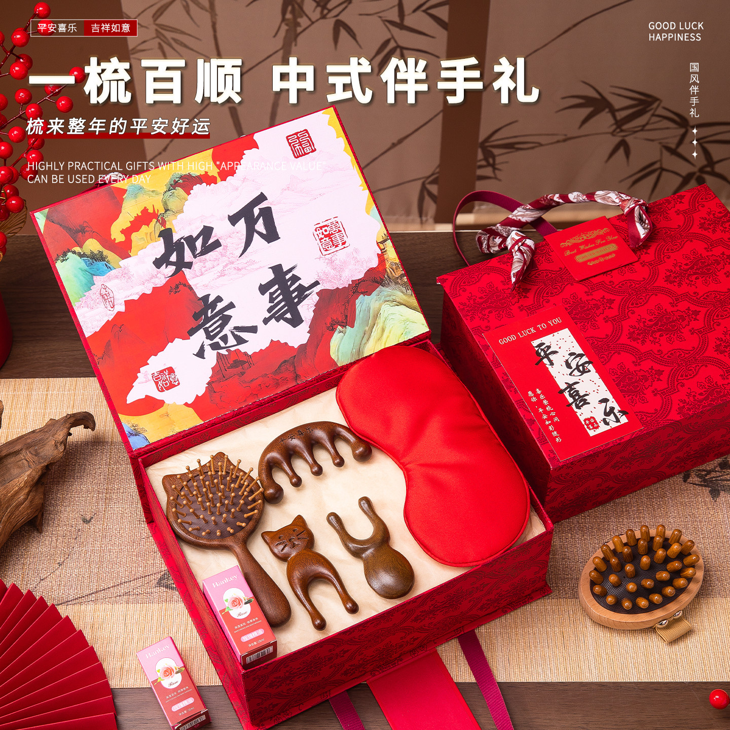母亲节礼物送妈妈亲人檀木按摩梳艾草锤生日礼物送女生团购伴手礼
