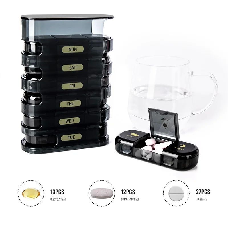 一周七天药品分装 盒一日三餐密封迷你随身小分药盒 药盒便携式 日式