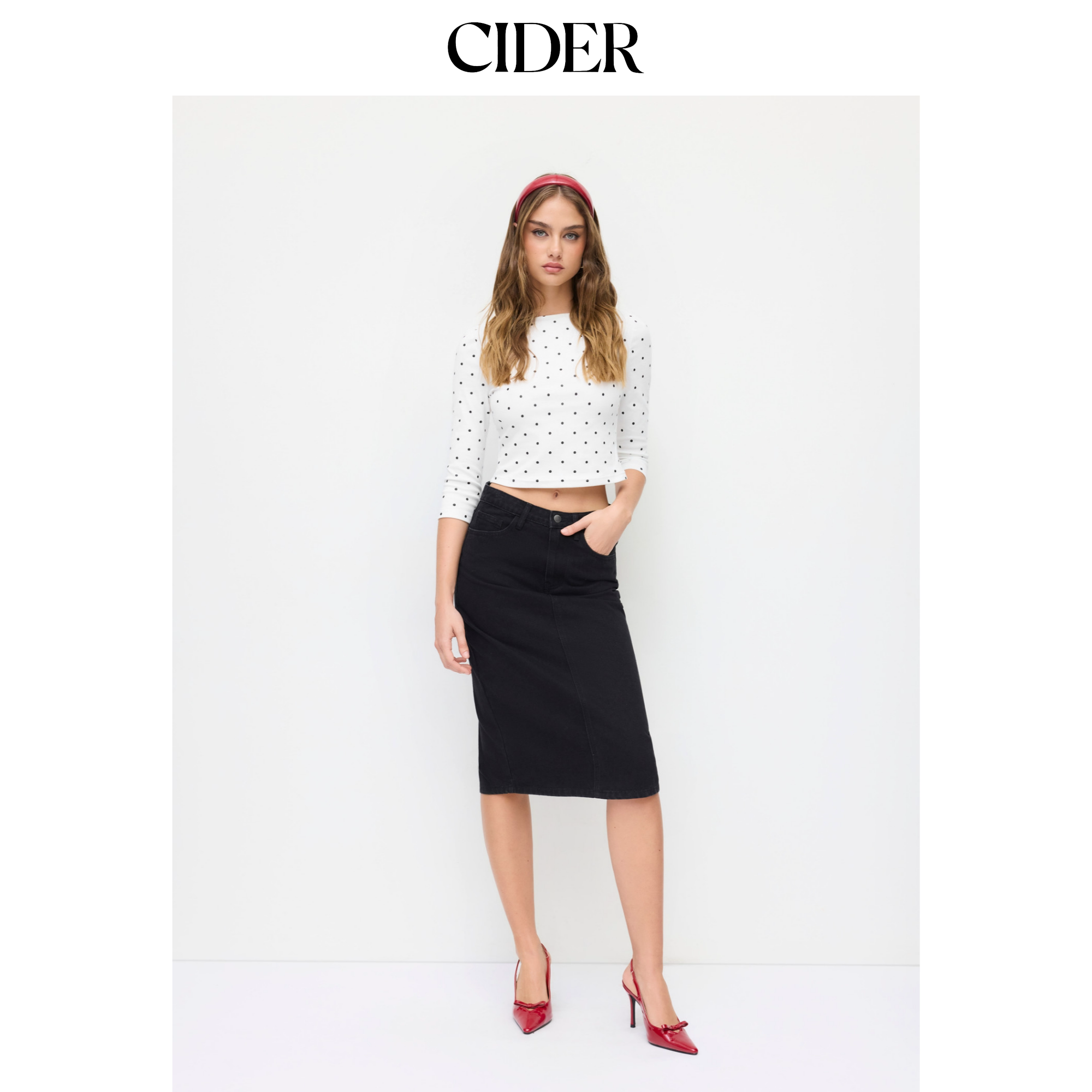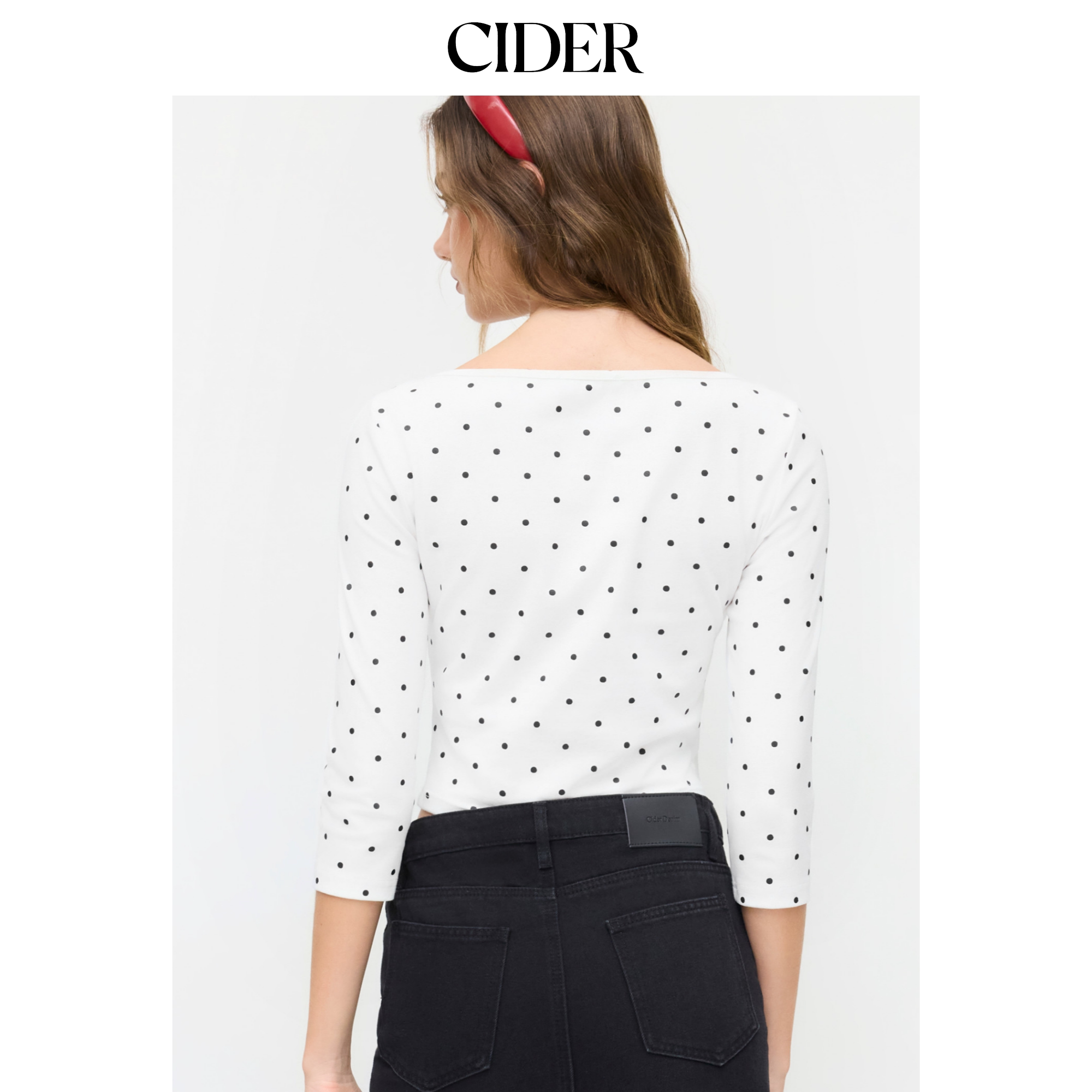 CIDER棉质混纺波点船领中袖 T恤115006934 短款由