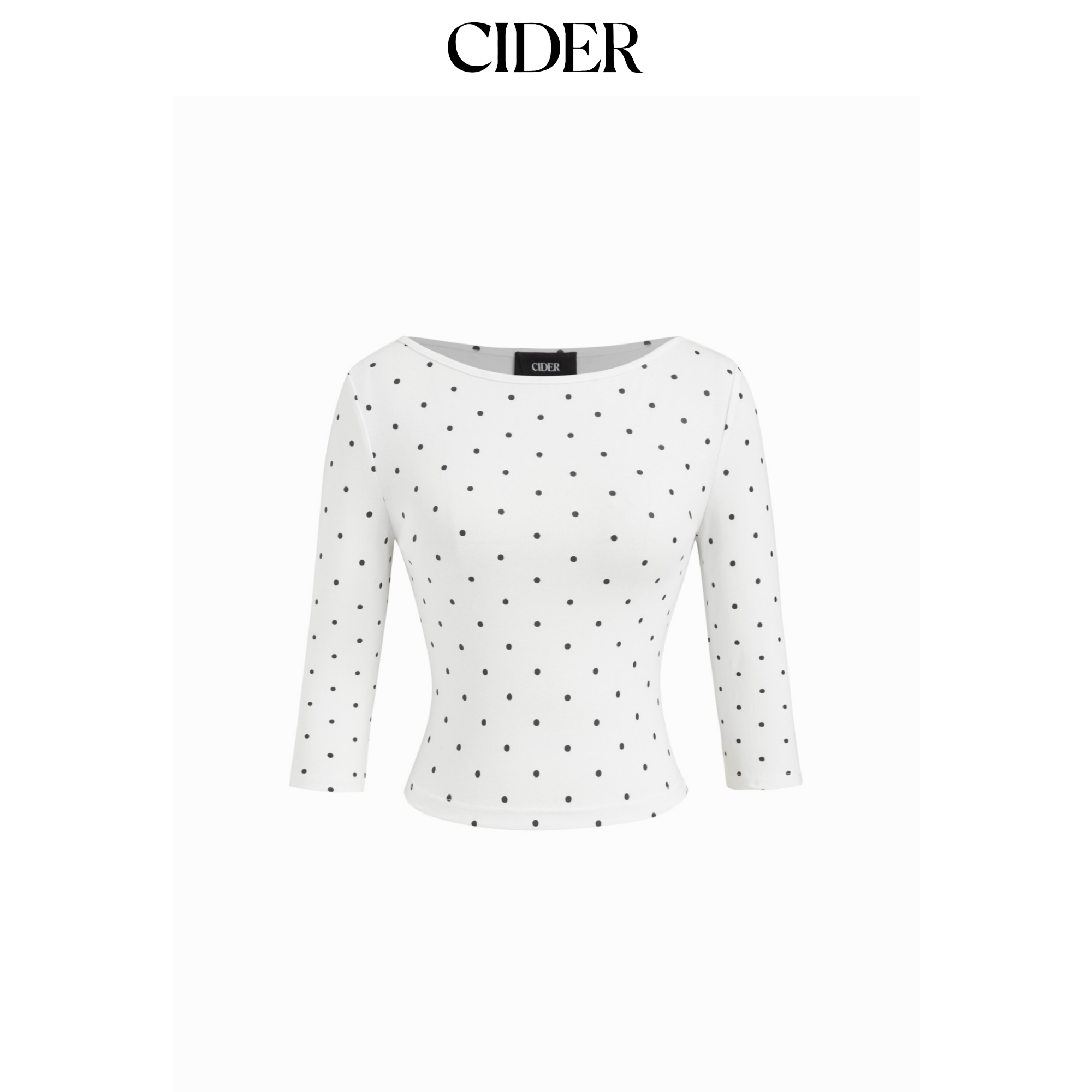 CIDER棉质混纺波点船领中袖 T恤115006934 短款