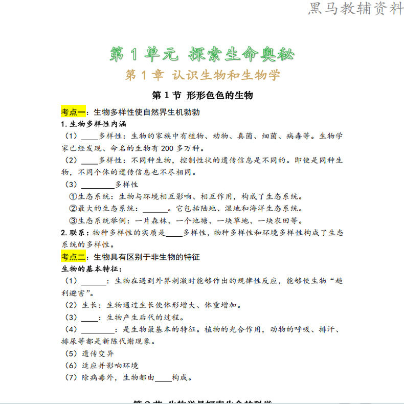 为您提供商品会考每课详细知识点总结归纳七八年级上下册单元 重点知识清单早背完默会考必备复习资料 初中生物78年级夏季 2026新北师大版的详细介绍,