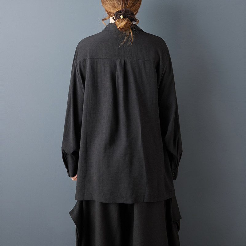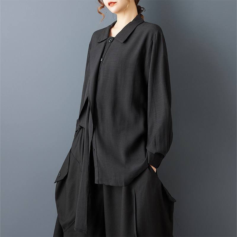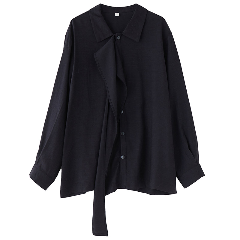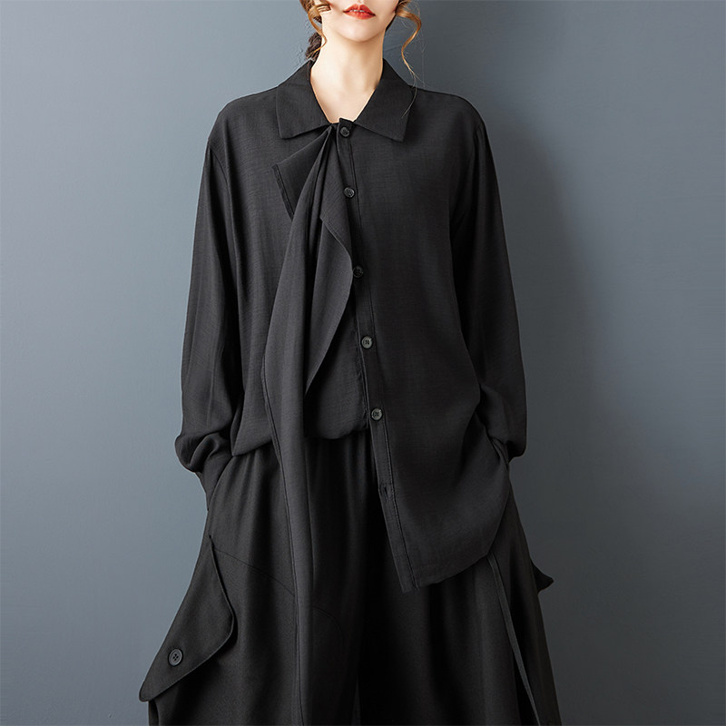 阔腿裤 春装 黑色女 上衣 翻领飘带衬衫 新款 宽松暗黑风小众设计时尚