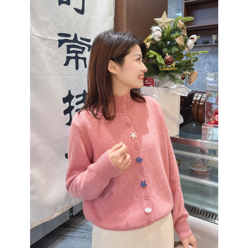 紫璐莱海贝星星 外套95X 韩系慵懒浣熊绒半高领纽扣设计感毛衣开衫