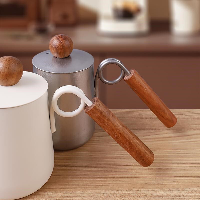 挂耳咖啡手冲壶304不锈钢胡桃木柄带盖咖啡壶细口长嘴壶定制logo