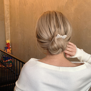 蝴蝶结倒插梳发夹丸子头发钗发簪碎发刘海夹防滑 少女感波点发梳由