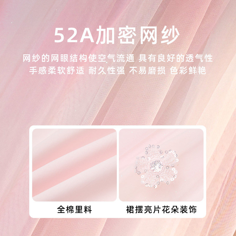 织物猪 浅春系拼接网纱背心连衣裙女茶歇绿色漂亮短裙子 油画软纱