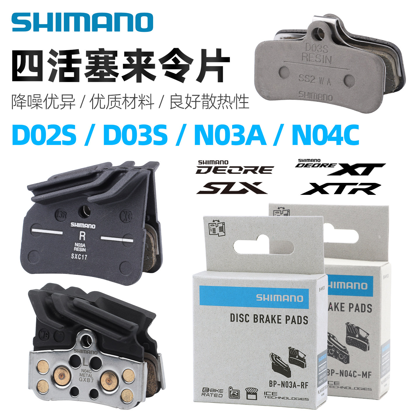 为您提供商品N04C SHIMANO禧玛诺山地车碟刹四活塞来令片D03S树脂金属散热N03A的详细介绍,