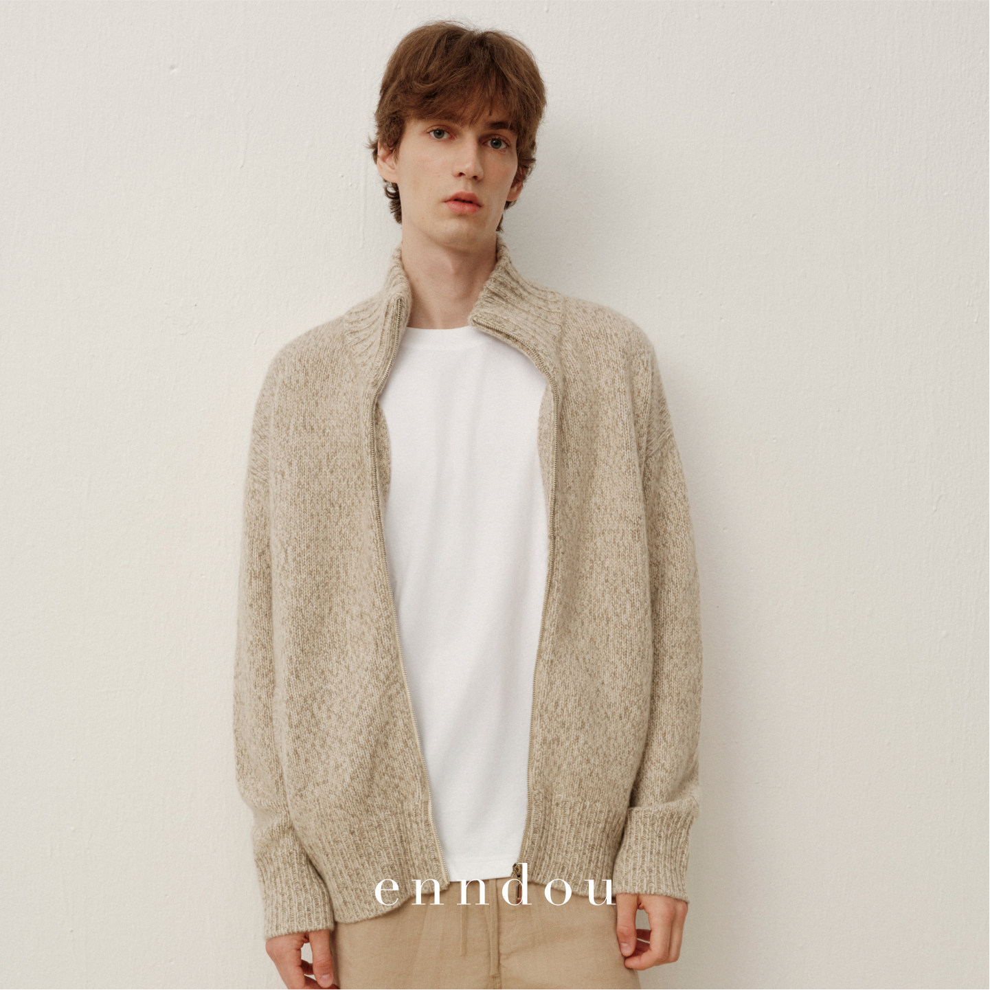 enndou男装 100%山羊绒拉链针织休闲开衫 男女同款 外套 秋冬新款