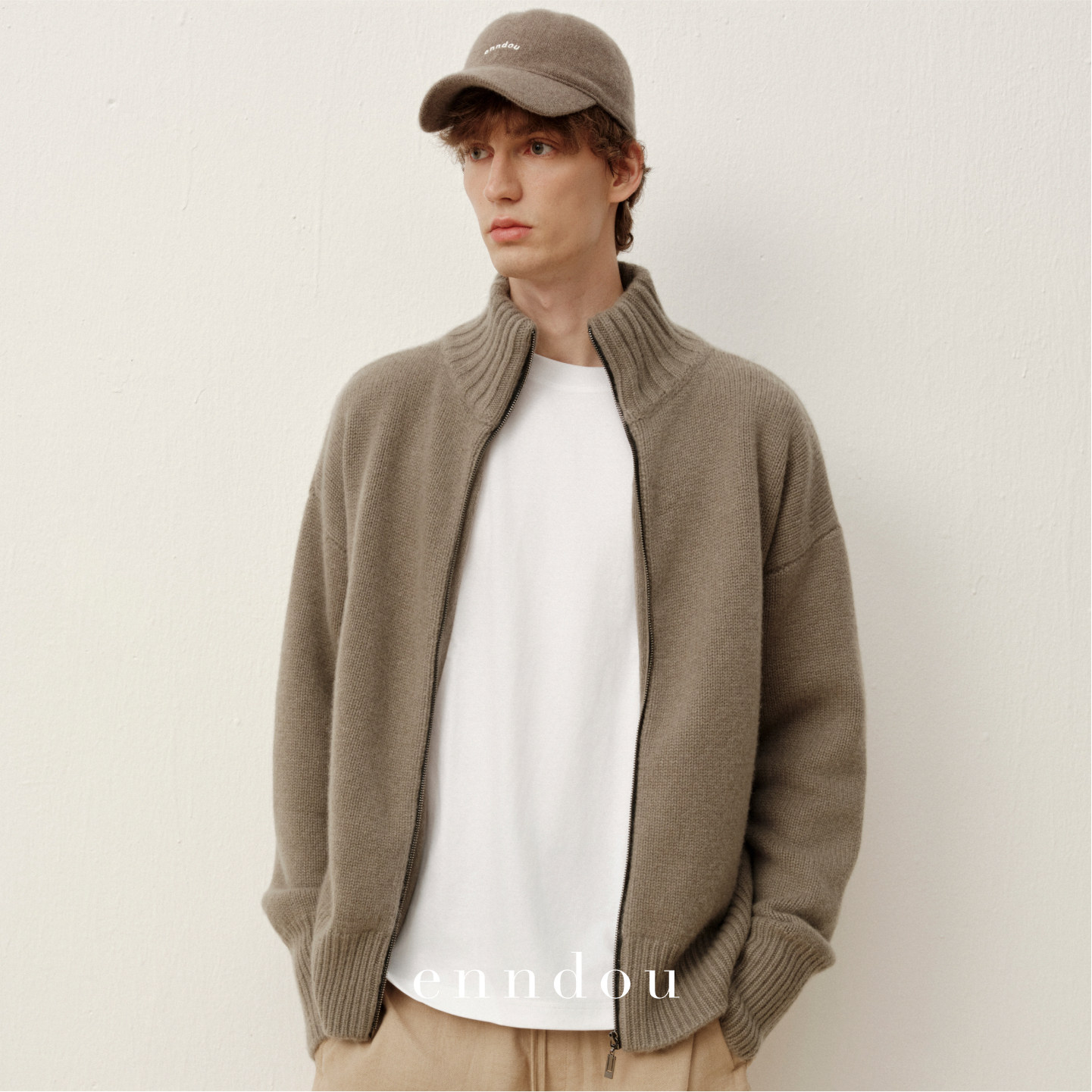 enndou男装 100%山羊绒拉链针织休闲开衫 男女同款 外套 秋冬新款由