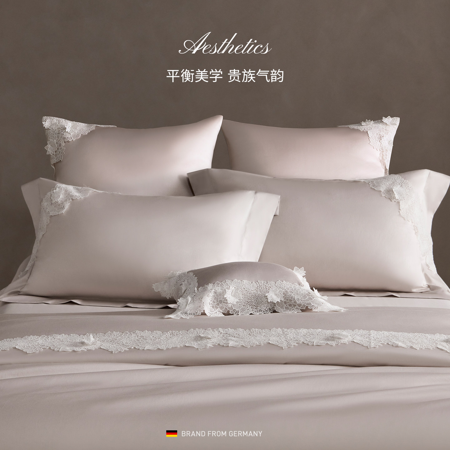 高级感亲肤床单床笠 irisette德国高奢140支长绒棉蕾丝四件套法式