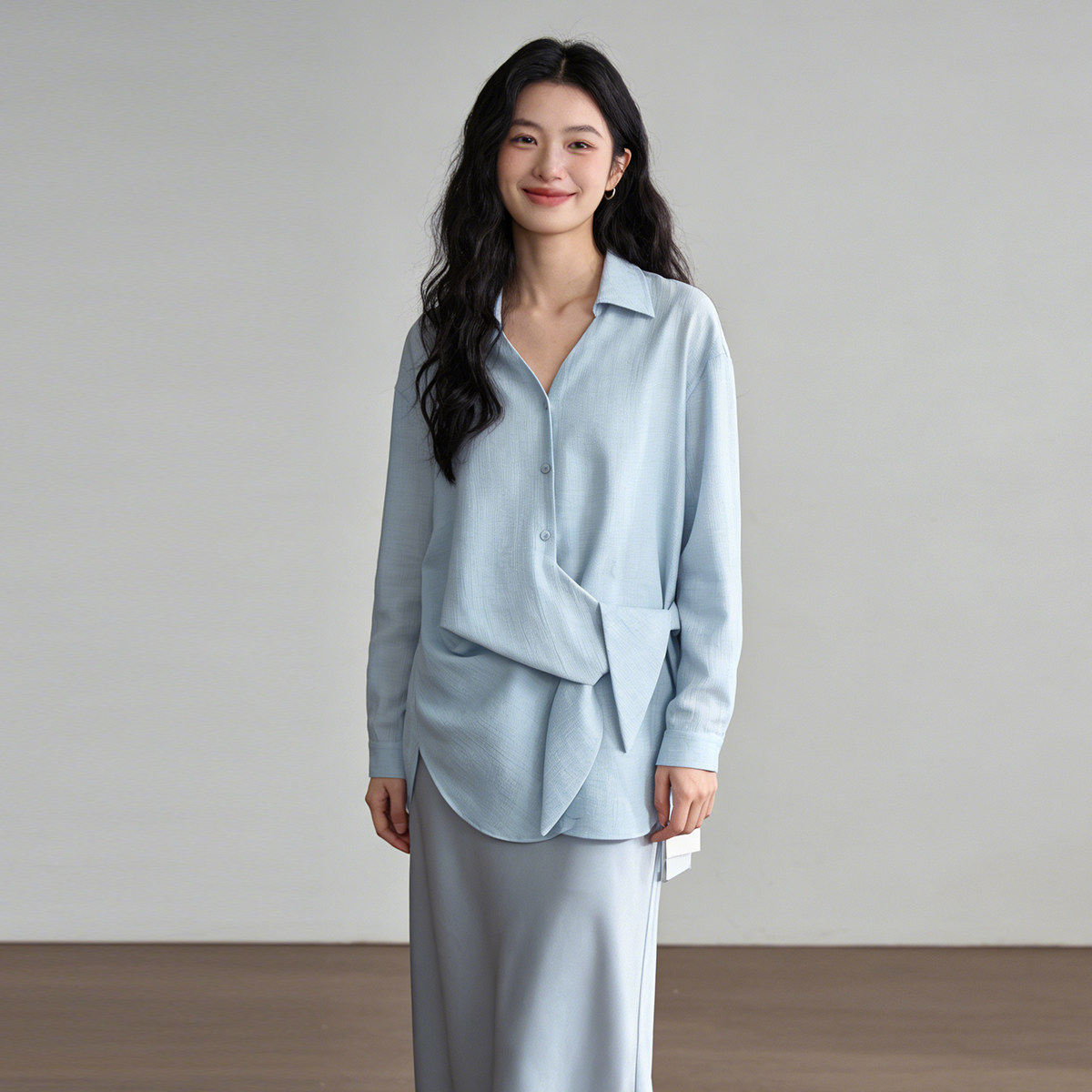 不规则系带开叉衬衫 399 075 绍 26春装 60%粘胶纤维 帛由