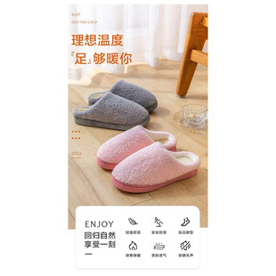 冬季 女 纯色加绒厚一粉色珊瑚绒保暖月子简约室内棉拖毛拖鞋