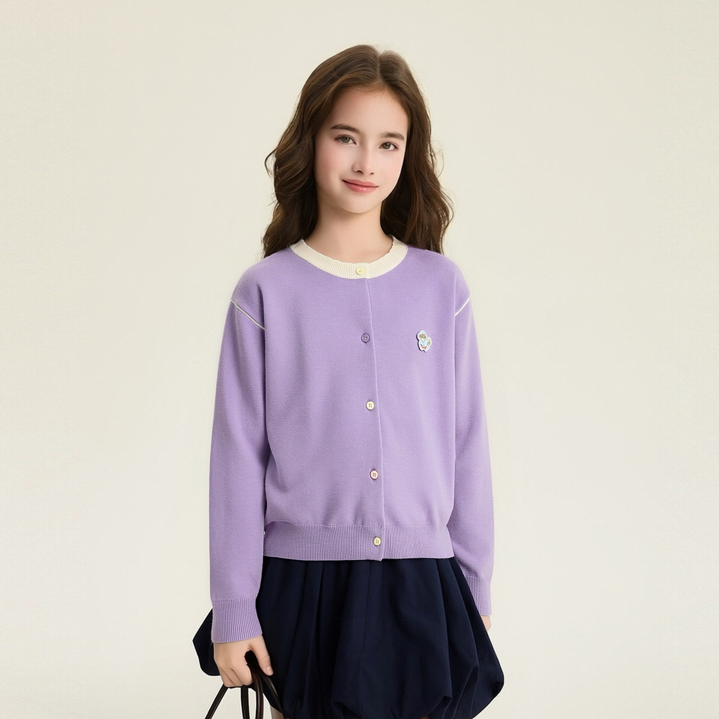 笛莎官方旗舰童装 春季 新款 大童女孩儿童撞色圆领外套 女童针织开衫由
