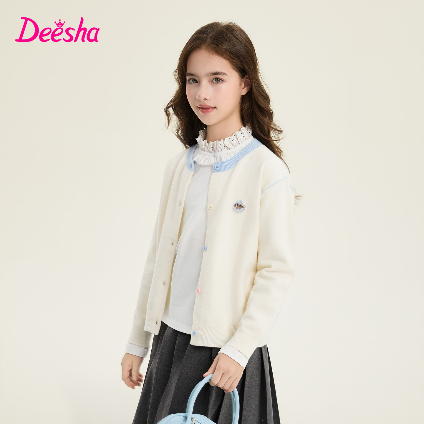 为您提供商品笛莎官方旗舰童装 春季 新款 大童女孩儿童撞色圆领外套 女童针织开衫的详细介绍,