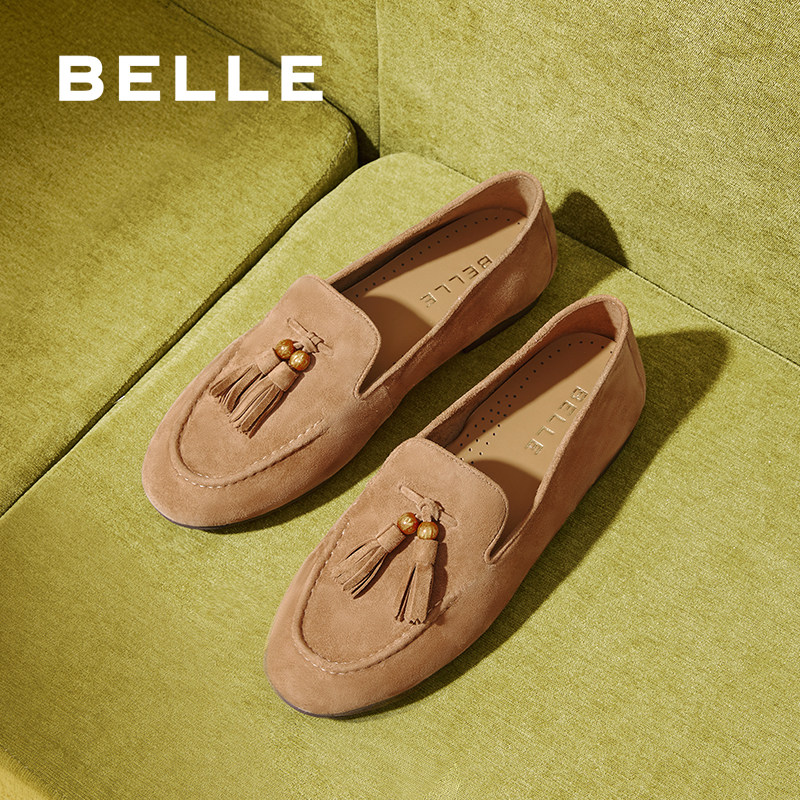英伦豆豆鞋 百思图26春新款 绒面羊皮鞋 miu系乐福鞋 UXE01AA6 女单鞋