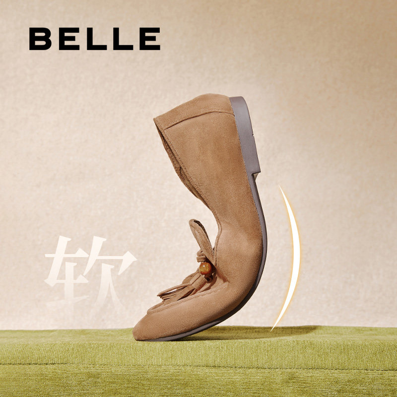 软底渔夫豆豆深口单鞋 子E7S1DCA5预 女新款 百丽复古羊皮乐福鞋