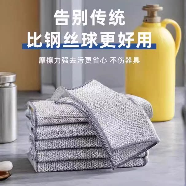 钢丝洗碗布厨房专用银丝棉纱洗碗巾双层加厚不易沾油抹布刷碗神器