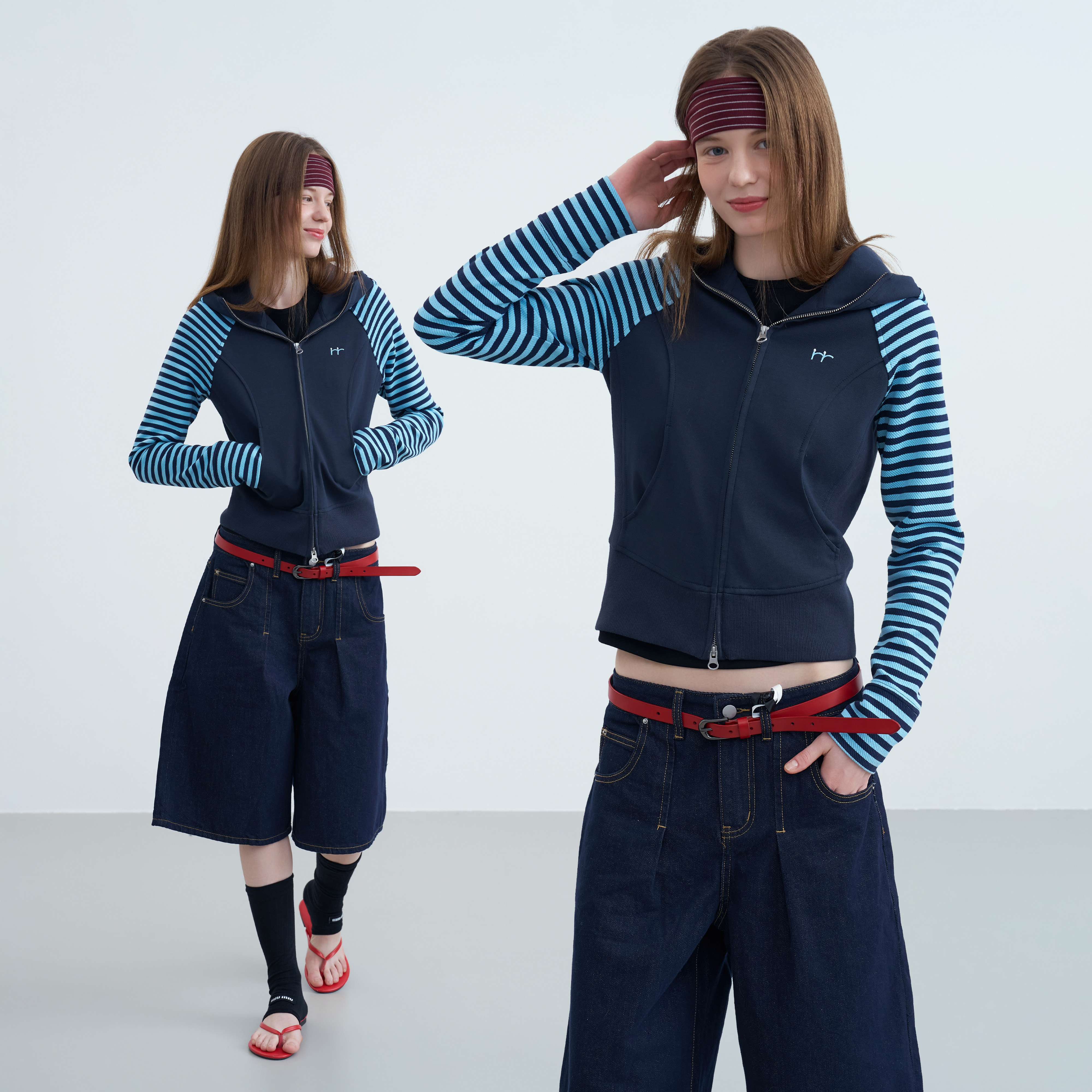 为您提供商品卫衣女休闲短款 riverstone plus 条纹拼接刺绣连帽修身 外套 开衫的详细介绍,